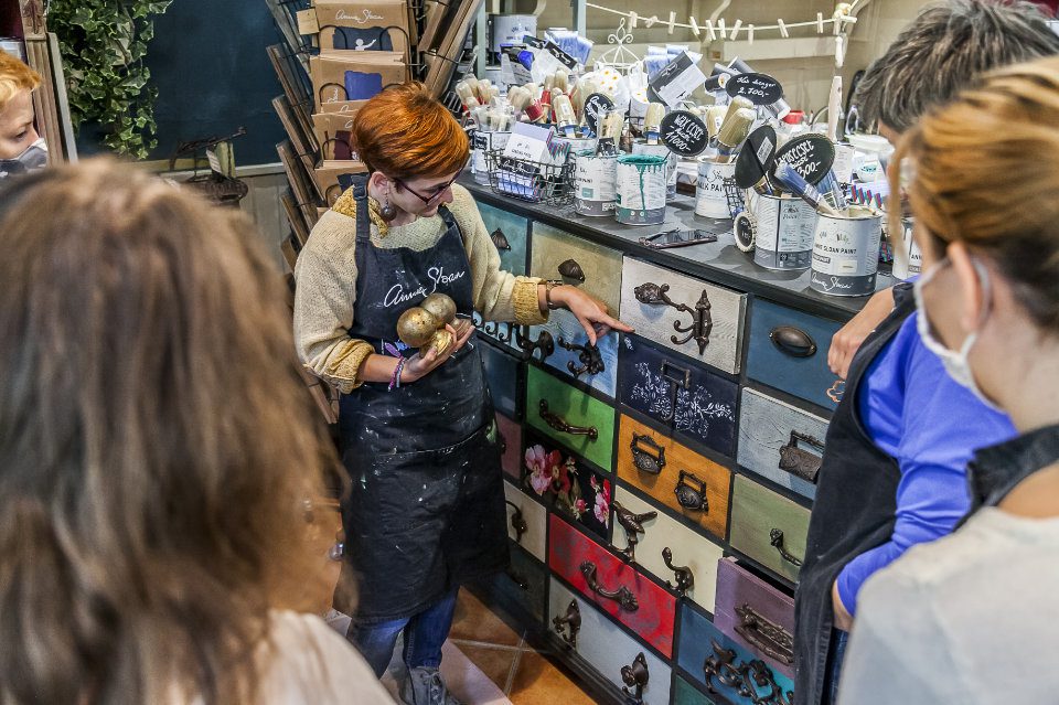 A workshopon kifejezetten a Chalk Paint™ festékkel és az Annie Sloan színekkel dolgozunk. Itt a helyed, ha megismernél új technikákat, melyeket bútorfestés közben tudsz használni.