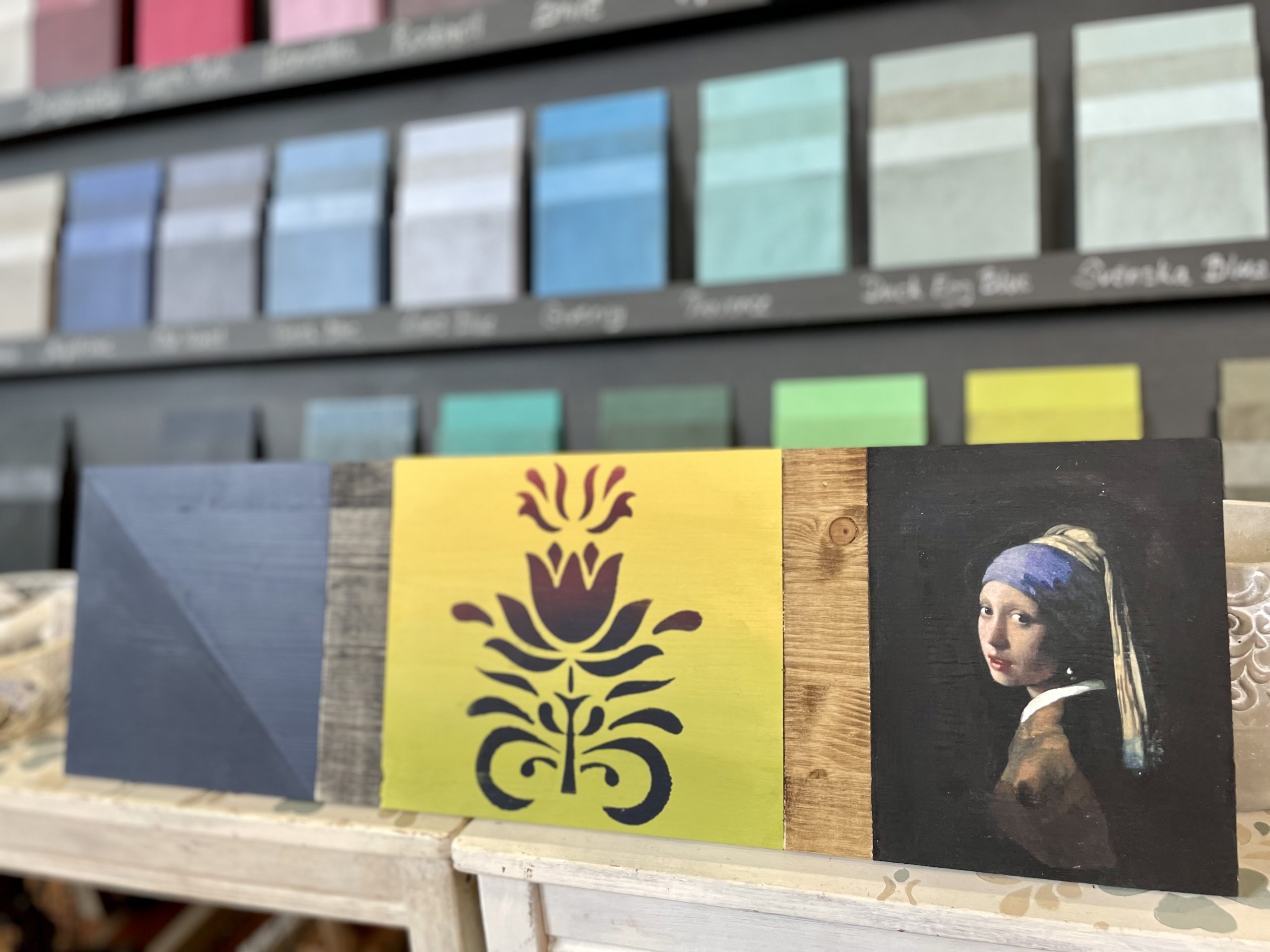 A workshop célja, hogy különböző színeken és stílusokon keresztül mutassuk meg a bútordíszítő technikákat, így két különböző, eltérő stílusú workshop is készült ebben a témában. Mindkettőben egy deszkát festünk.